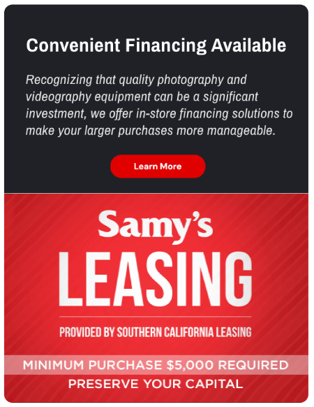 Since 1976 Samy's Camera has been a leader in sales and rentals of high quality imaging products and the ulitmate resource for the professional and amateur photographer. We offer that same great service and selection to corporate and government customers.