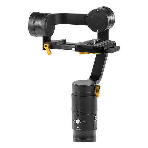 The MS-PRO Beholder 3-Axis Gimbal Stabilizer for Mirrorless Cameras from ikan supports cameras weighing up to 1.9 pounds. Designed for professionals, it is suitable for use with small cameras with a 1/4"-20 mounting screw hole, GoPro cameras (requires optional mount not included), and select smartphones (requires optional mount not included). The camera platform incorporates three locking levers that allow you to adjust and balance your camera on the gimbal without requiring tools.
