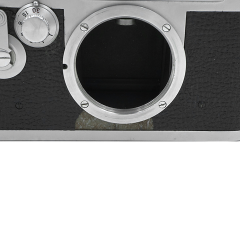 NOTE: Camera has a sliver of leather missing by lens mount area.Produced from 1957–1960 Change in body configuration to facilitate manufacture of larger and brighter viewfinder. Projected frame lines and automatic parallax correction for 50 and 90mm lenses.