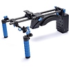 The Field Cinema Standard Bundle places most of the camera weight on the shoulder and is therefore designed for use with an external monitor. If you are considering a shouldermount-style rig using an eye piece, please consider the eyeSpy line of DSLR rigs. To use taller cameras (or shorter cameras with optional battery grip) with front-mounted accessories such as the microFollowFocus or microMatteBox, an additional adapter accessory is needed.