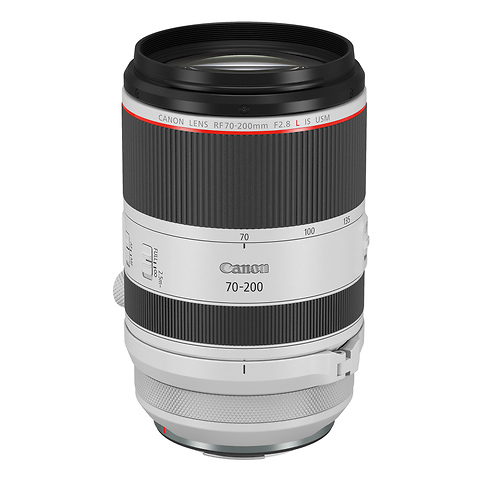 The RF 70-200mm f/2.8L IS USM uses an extending inner barrel design that keeps the lens compact when retracted. This differs from Canon's earlier internal-zoom EF version, trading constant length for reduced size and weight. The dust and water-resistant sealing includes a fluorine coating on the front element that repels water, oil, and fingerprints.